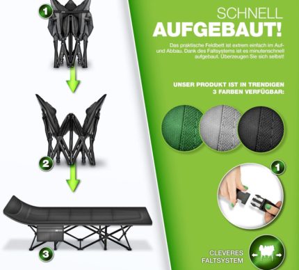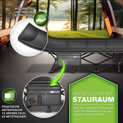 Kamp ležaljka sklopiva 210x30x40 cm, crna –