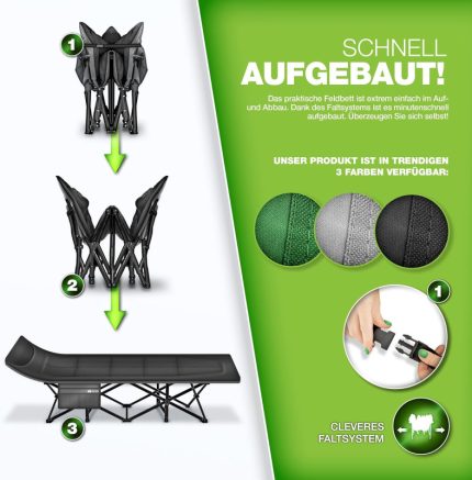 Kamp krevet 178cm, sklopivi, crni –