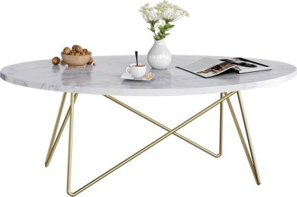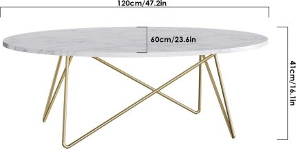 Ovalni stolić, imitacija mermera, bijelo-zlatni -