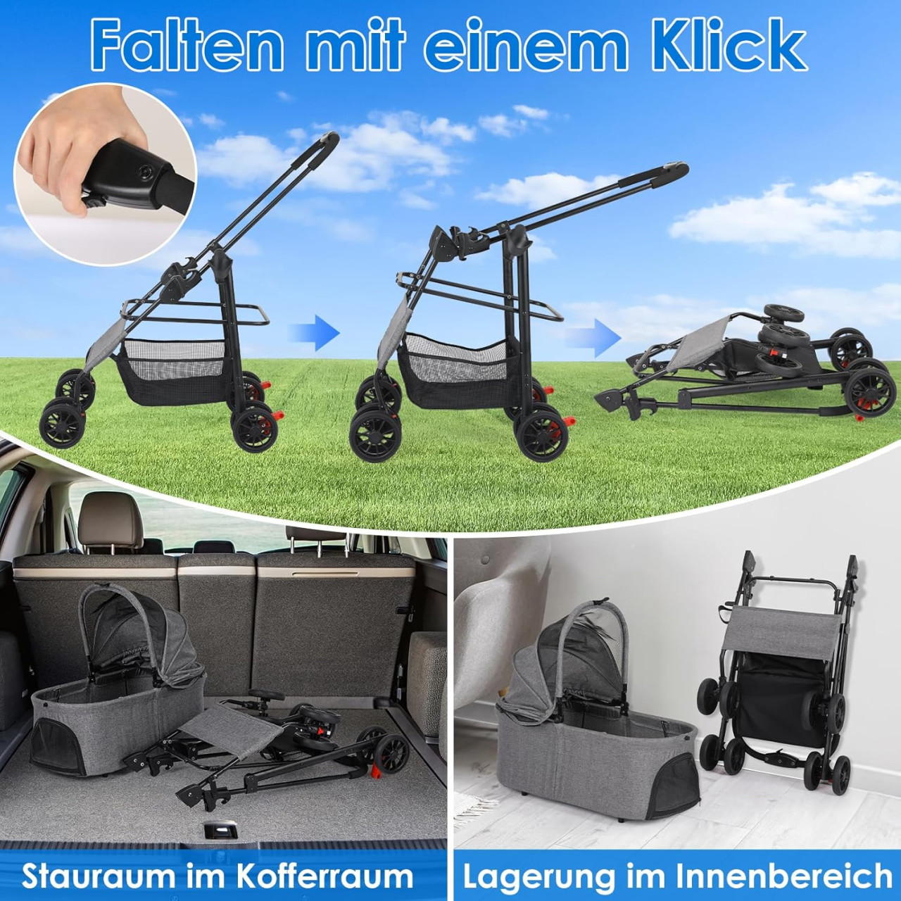 Ovaj multifunkcionalni kolic možeš koristit na tri načina – kao standardni kolic za pse, kao autosjedalicu ili kao odvojivu torbu/kennel za manje kućne ljubimce. Lagana aluminijska konstrukcija i Oxford platno s mrežom osiguravaju izdržljivost, ventilaciju i udobnost.