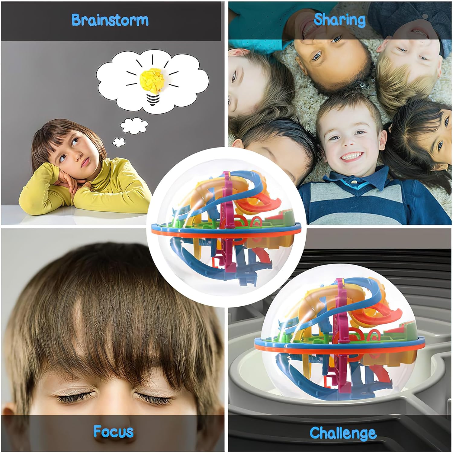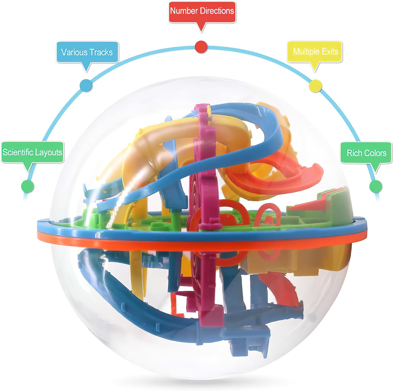 Naša 3D labirint lopta predstavlja nadograđenu verziju s brojnim barijerama. Putevi su isprepleteni rampama i S-oblikovanim preprekama. Igrači vode loptu kroz 138 brojeva na stazi kako bi stigli do cilja. Nevjerojatna 3D magična slagalica s zamršenim putem i više nivoa pruža umjereni izazov, idealan za mlađu djecu. Namijenjena je onima koji već posjeduju osnovne fine motoričke vještine, ali im je potrebna dodatna stimulacija za razvoj kognitivnog potencijala.