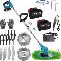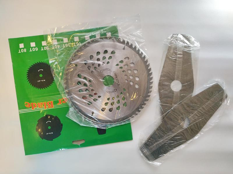 U paketu: 1 × Rasentrimmer, 1 × 2 Ah baterija, 1 × Punjač, 2 × Ravni noževi, 2 × Zakrivljeni noževi sa zubima