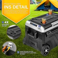 Pokreće se na 12/24V (auto i kamion) ili 220V (kućna mreža), a može raditi i na vanjsku bateriju do 7 sati bez punjenja. Sa točkićima i teleskopskom ručkom, lako se transportuje, a USB priključak omogućava punjenje mobitela ili drugih uređaja. Idealno za putovanja, kampovanje, pecanje ili duge vožnje