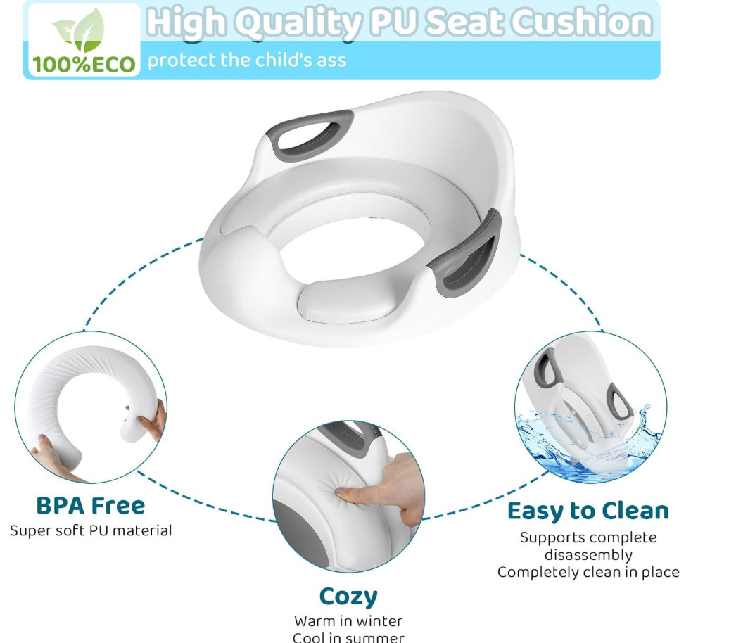 Sjedalica ima četiri neklizajuće gumene nožice koje osiguravaju čvrsto prianjanje na WC školjci i sprječavaju klizanje. Mekani PU jastuk nudi vrhunsku udobnost.