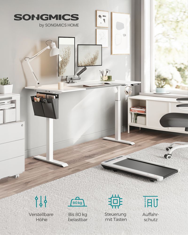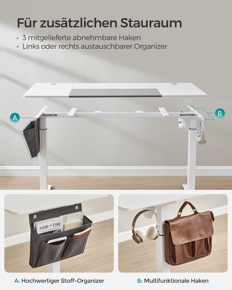 [Kreiraj narudžbu] Platneni džep s lijeve ili desne strane za knjige, časopise i još mnogo toga, 3 kuke za slušalice i torbe, 2 priključka za praktično upravljanje kablovima. Ništa ne poboljšava vašu koncentraciju više od urednog stola!