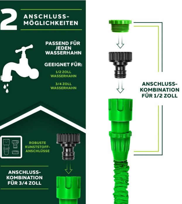 – Uključuje adapter od 1/2 inča do 3/4 inča, prikladan za bilo koju navojnu slavinu