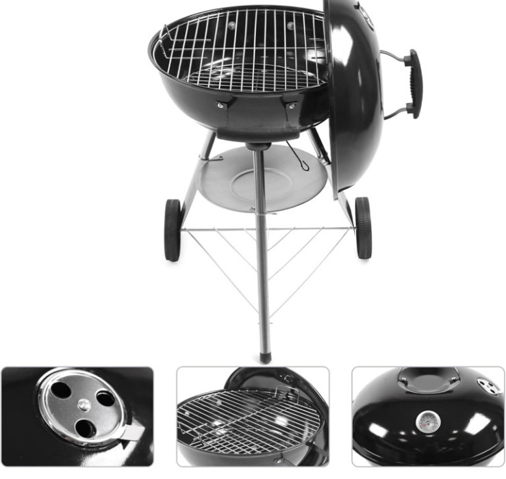 Ovaj prijenosni roštilj donosi vrhunsko iskustvo roštiljanja u okruglom, kompaktom formatu. Obrađen od legure čelika s ekskluzivnom crnom završnom obradom, ima konstrukciju otporna na koroziju, a ugrađen termometar olakšava precizno podešavanje temperature bez skidanja poklopca.