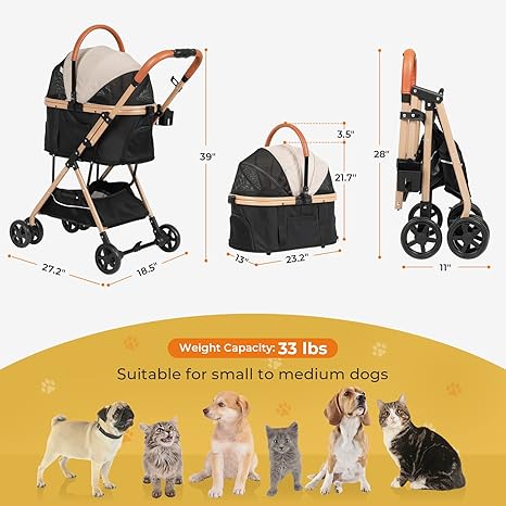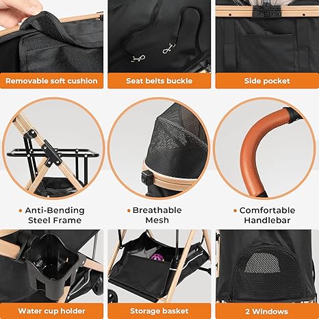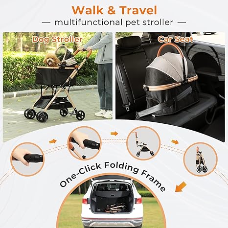【3-u-1 Multifunkcionalna kolica za kućne ljubimce】 Ova kolica za pse dolaze s odvojivom transporterom za kućne ljubimce, tako da se mogu koristiti kao torba za kućne ljubimce i autosjedalica. S ovim sklopivim kolicima za kućne ljubimce možete povesti svog voljenog ljubimca sa sobom, bilo da idete na trčanje u parku, na gužvu ili putujete i kampujete.