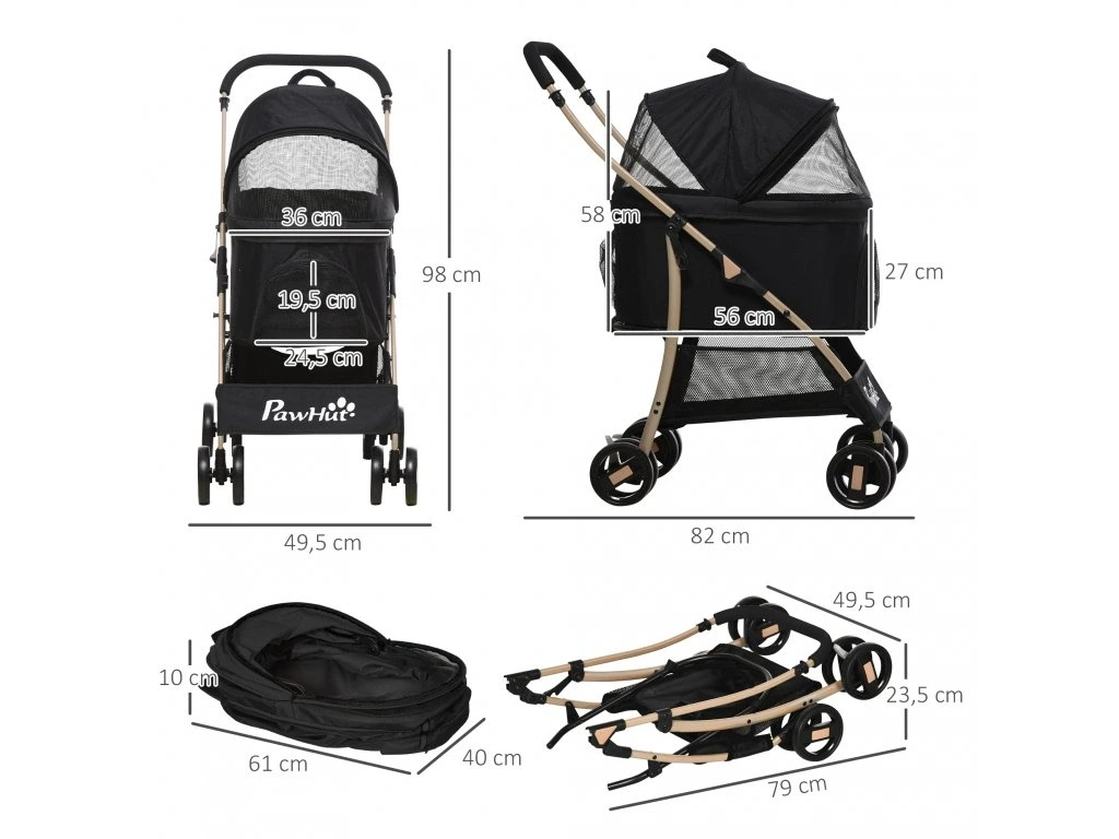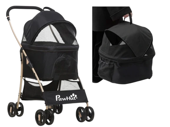 Kolica za pse 2 u 1 – PAWHUT D00-166V00BK, crna