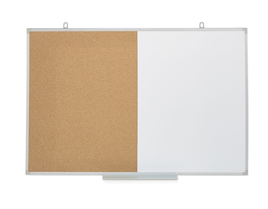 Višenamjenska bijela ploča savršen je alat za vaš ured: želite li prikvačiti bilješke pribadačama ili radije raditi s magnetima i olovkom – sve je moguće s dvodijelnom pločom za bilješke. Savršeno ste opremljeni za sastanke, prezentacije i obavijesti. Ploča za bilješke lako se pričvršćuje na zid u horizontalnom formatu pomoću priloženog materijala za montažu. Na praktičnoj polici možete postaviti markere i spužve nadohvat ruke.