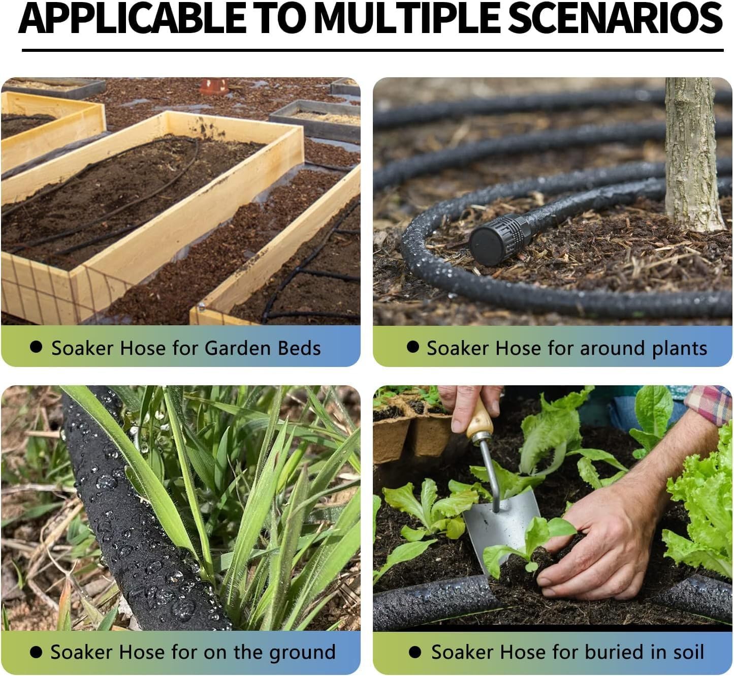 Visokokvalitetni materijal: napravljen od visokokvalitetne i izdržljive reciklirane gume, koja je otporna na toplinu, elastična i otporna na oksidaciju. Porozna gumena struktura omogućava ravnomjernu raspodjelu vode po cijeloj dužini crijeva, osiguravajući optimalnu vodu za biljke.