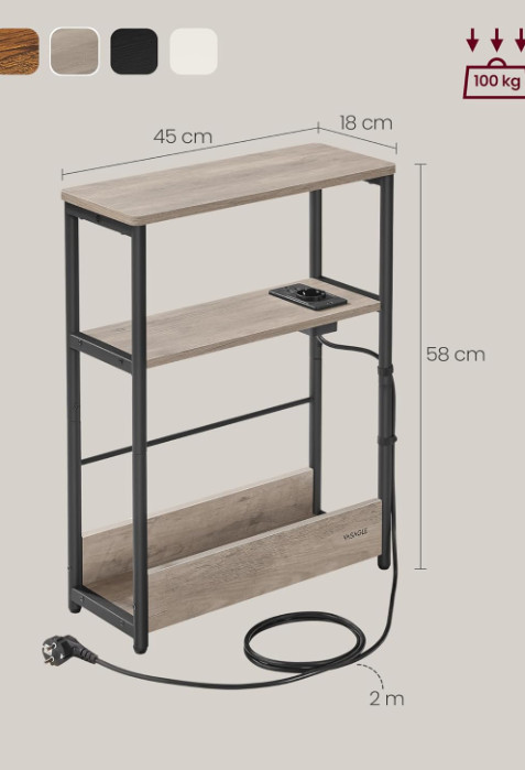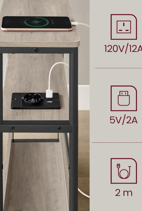 [Ugrađeni utikač] S 1 utičnicom i 2 USB priključka, ovaj mali stolić omogućuje vam istovremeno punjenje telefona, tableta i drugih uređaja. S kabelom od 2 m imate mogućnost postaviti ovaj stolić gdje god želite.