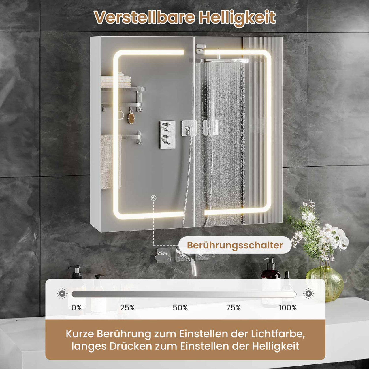 Praktičan i moderan ormarić za kupatilo s dvostrukim ogledalom i integrisanom LED rasvjetom. Opremljen je dodirom upravljivim senzorom kojim možeš birati između 3 temperature boje svjetla (hladno, neutralno, toplo) i podešavati jačinu osvjetljenja. Idealno za šminkanje, brijanje ili jutarnju rutinu