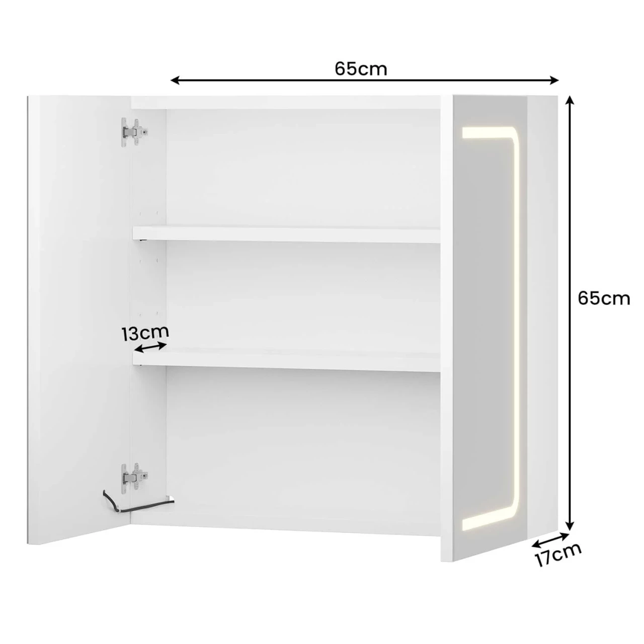 LED kupatilski ormarić, 2 vrata, 65x65x17 cm, bijeli –