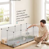 UNUTRAŠNJI OGRAĐENI PROSTORI ZA MALE ŽIVOTINJE “Uradi sam”: Visina, širina i dužina ovog modularnog ograđenog prostora za male životinje mogu se proširiti prema ličnim idejama kako bi se promijenio sloj i oblik za enterijere kao što su spavaće sobe, dnevne sobe, hodnici, balkoni, uglovi. “Uradi sam” ograđeni prostor za male životinje posebno je pogodan za trčanje i igru ​​zamoraca, hrčaka, glodara, ježeva, činčila, zečeva, mačića, mačaka ili štenaca.