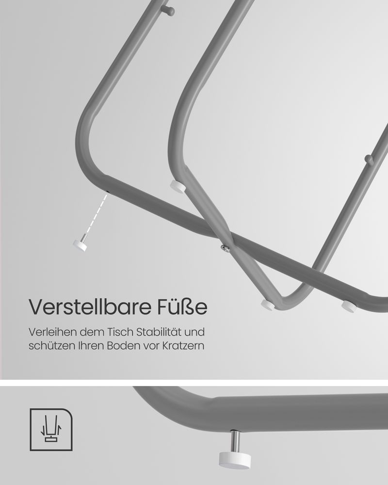 [Robustan i stabilan] Robusna iverica se može sigurno i bez klimanja pričvrstiti na okvir. Jednodijelne čelične noge u obliku slova U osiguravaju čvrsto držanje. Podesive nožice povećavaju stabilnost i štite vaš pod od ogrebotina.