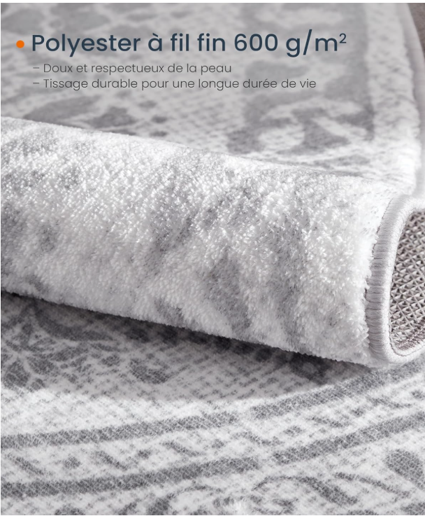 Neklizajući i svestran: Stražnja strana tepiha za dnevnu sobu izrađena je od TPR-a i stoga je posebno neklizajuća, što ga čini pogodnim za različite podne obloge, npr. B. za parket, pločice i drugo