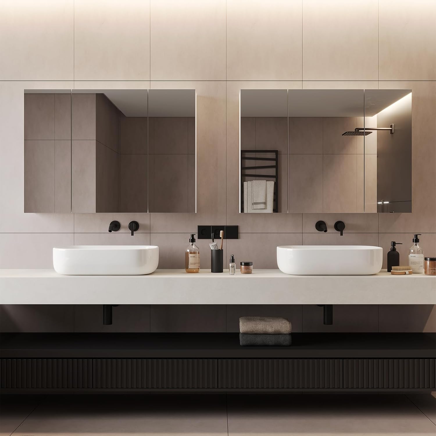 Ušteda prostora: DICTAC ormarić za kupatilo sa ogledalom koristi zidni dizajn, ormarić širine 80 cm obično se postavlja direktno iznad umivaonika, ne zauzima prostor na podu i nudi veliki prostor za odlaganje britvica, toaletnih potrepština, četkica za zube, kozmetike, krema za lice itd., čineći prostoriju prostranijom i urednijom.