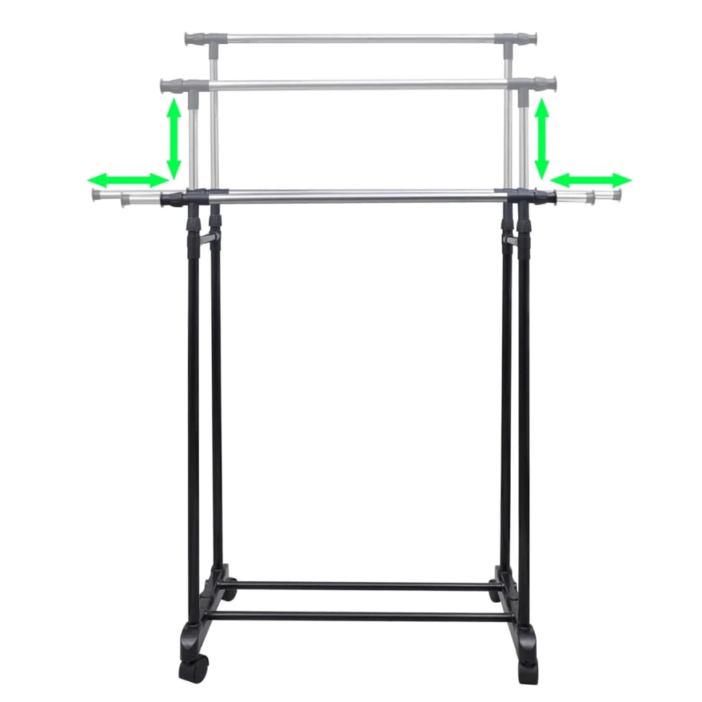 Podesivi stalak za odjeću s 4 kotačića i dvije prečke