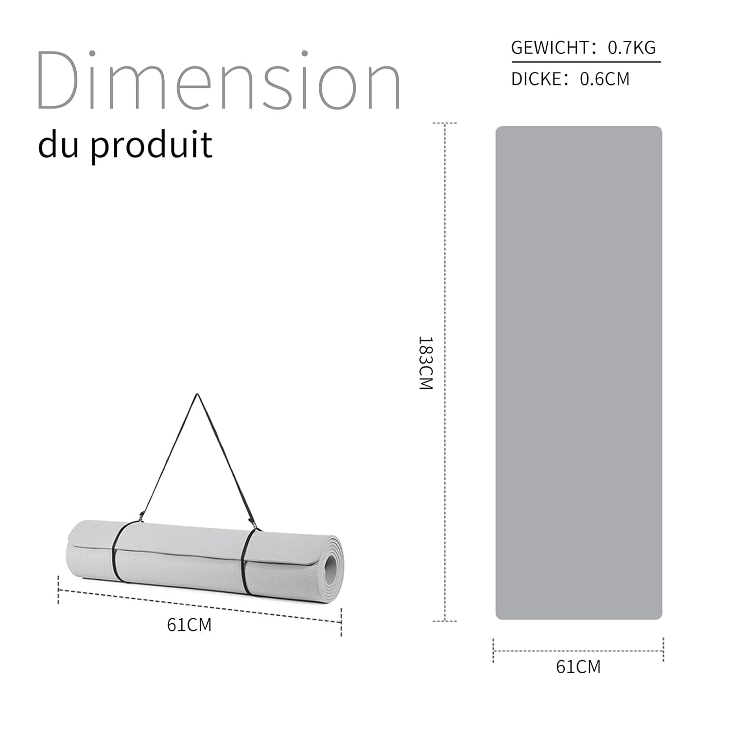 Savršena debljina. Debele gimnastičke strunjače mogu uzrokovati gubitak ravnoteže i ozljede kod početnika. Debljina od 0,6 cm ublažava udarce i pomaže početnicima da savladaju ravnotežu. Sa debljinom od 0,6 cm, pogodne su za pilates, HIIT, jogu, gimnastiku i druge vježbe.
