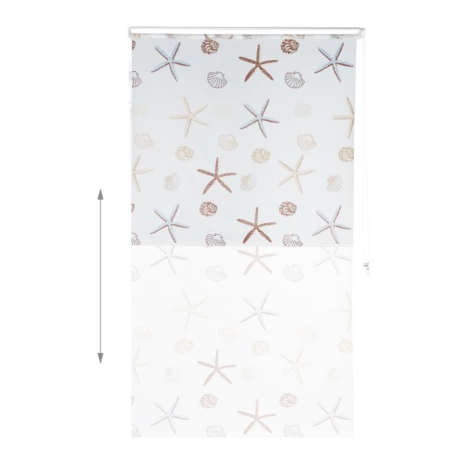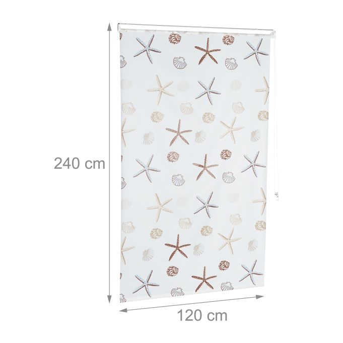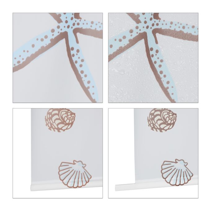 Ova rolo zavjesa za tuš savršeno kombinira funkcionalnost i dekor. Za razliku od klasičnih zavjesa, ostaje ravna duž kade, čime osigurava dovoljno prostora za tuširanje. Vodoodbojna površina s nautičkim printom školjki i morskih zvijezda unosi dašak oceana u vašu kupaonicu. Zavjesa se jednostavno povlači užetom i može se skinuti s držača ili koristiti kao roletna za prozor.
