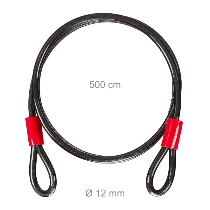 Ovaj kabel za zaključavanje je fleksibilan alat za zaštitu vaših stvari od krađe. Koristite omču u kombinaciji s katancem, U-bravom ili sličnim uređajem za osiguranje bicikala, kaciga, korpi za kupovinu i dijelova bicikala poput kotača i sjedala. Sigurnosni kabel je izrađen od jakog čeličnog užeta i ima plastični zaštitni premaz. Svestrana kabelska brava može se koristiti i za osiguranje vrtnog namještaja, prikolica i drugih stvari.