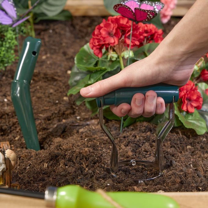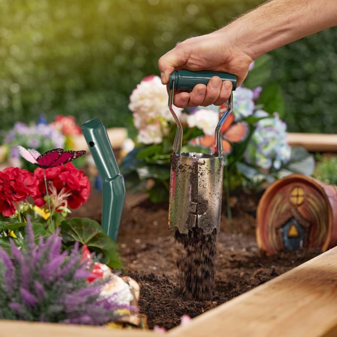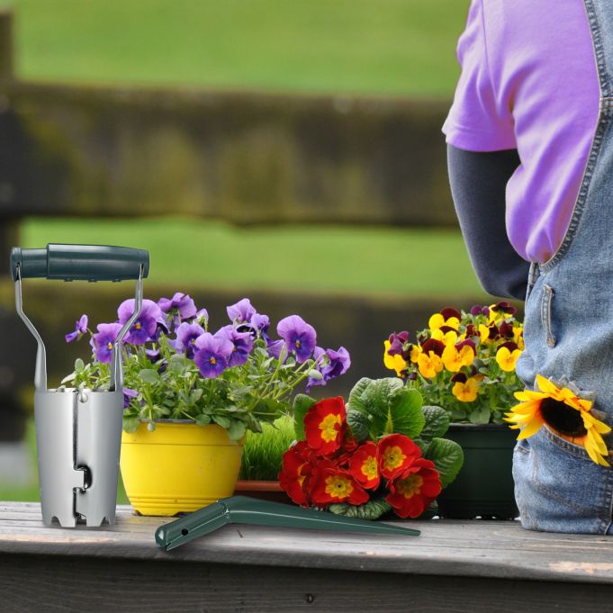 Ovaj praktični set za sadnju lukovica olakšava sadnju tulipana, narcisa, anemona i drugih cvjetnih lukovica u vaš vrt. Set uključuje nazubljenu sadnicu za lukovice koja pomaže u kopanju rupa u zemlji, kao i robusni metalni svrdlo pogodan za male lukovice, sjeme i mlade biljke. Zahvaljujući ugrađenoj skali odmah možete odrediti pravu dubinu sadnje, a zemlja se jednostavno prazni pritiskom na dugme na dršci, što omogućava brzo i efikasno sadnju.