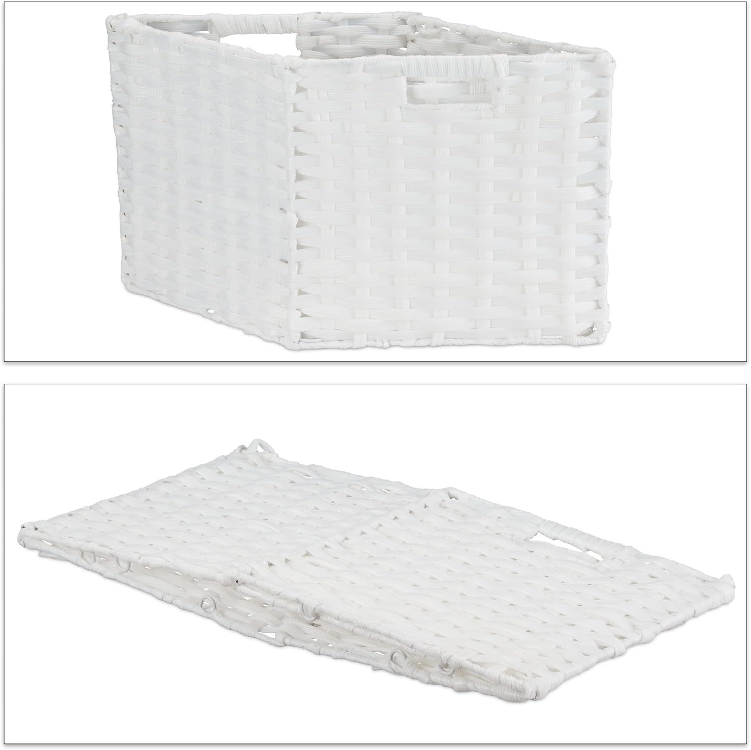 Ovaj praktični set od 2 pletene plastične korpe idealan je za organizaciju vašeg doma. Bilo da želite odložiti peškire, odjeću ili dječje igračke, ove korpe nude dovoljno prostora i olakšavaju održavanje urednosti. Zahvaljujući ručkama, lako ih je nositi i premještati, dok se njihov pravougaoni oblik savršeno uklapa u ormare, police ili vitrine.