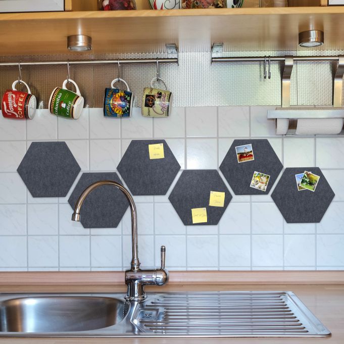 Uredite svoju kancelariju, dječju sobu ili kuhinju na kreativan način s ovim samoljepljivim filcanim oglasnim pločama. Set sadrži 6 pojedinačnih panela koje možete postaviti u željenom rasporedu – pojedinačno ili u prilagođenoj formi. Idealno za organiziranje bilješki, fotografija, popisa obaveza i inspirativnih ideja. Zahvaljujući samoljepljivoj poleđini, postavljanje na zid je brzo i jednostavno.