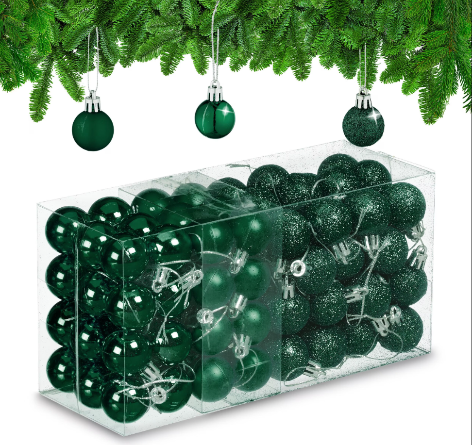 Set od 96 božićnih kuglica, tamno zelene, 4 x 3 cm