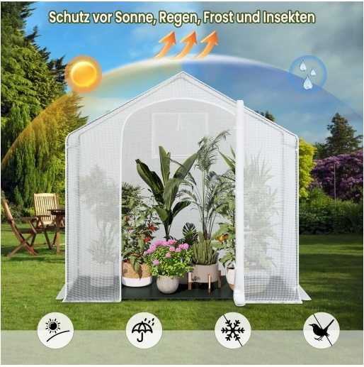 Brinite o svojim biljkama tokom cijele godine! Ovaj čvrsti staklenik je savršeno rješenje za uzgoj paradajza, začinskog bilja, cvijeća i povrća – i ljeti i zimi. Štiti od hladnoće, kiše, vjetra i UV zračenja, pružajući optimalne uslove za rast vaših biljaka.