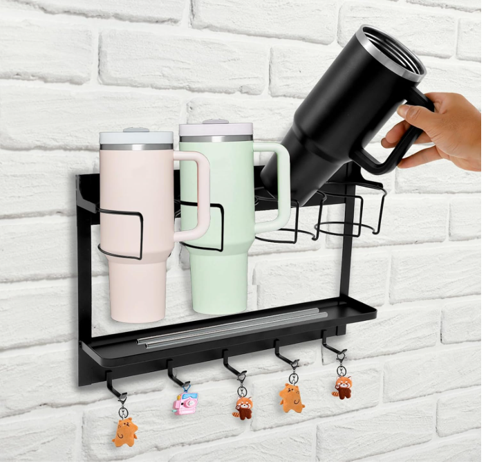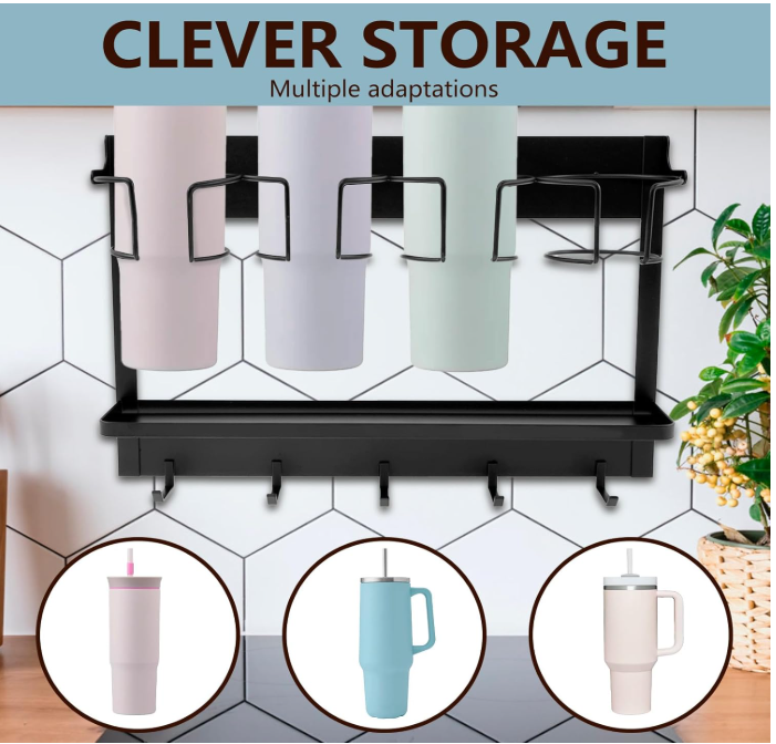 3 u 1: Naš zidni organizator za šolje ima 3 mala dijela: dio za šolje, dio za slamke i dio za pribor; koji su uredno postavljeni i veoma lijepi. Više kuka može se koristiti za odlaganje pribora za pranje šolja, pribora za šolje ili vrećica za flaše; što ih čini veoma praktičnima.