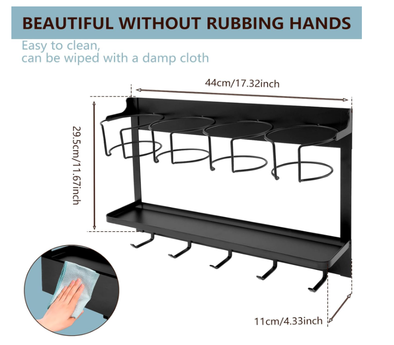Dekorativno: Naš zidni organizator za čaše je u elegantnim crnim tonovima koji se odlično uklapaju u prostoriju, čineći cijeli ambijent sofisticiranim i elegantnim, a uredno postavljen može pružiti ljudima veliku udobnost.
