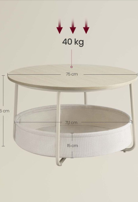 S promjerom od 75 cm i visinom od 45 cm, ovaj okrugli stolić za kavu savršeno se uklapa u vaš dnevni boravak i pruža praktično mjesto za zabavu ili rad.