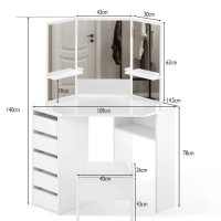 Ovaj toaletni stolić ima dvije velike ladice za sjenilo i puder u prahu, tri otvorena odjeljka za vašu kolekciju lakova za nokte i povišenu policu za bočice parfema.