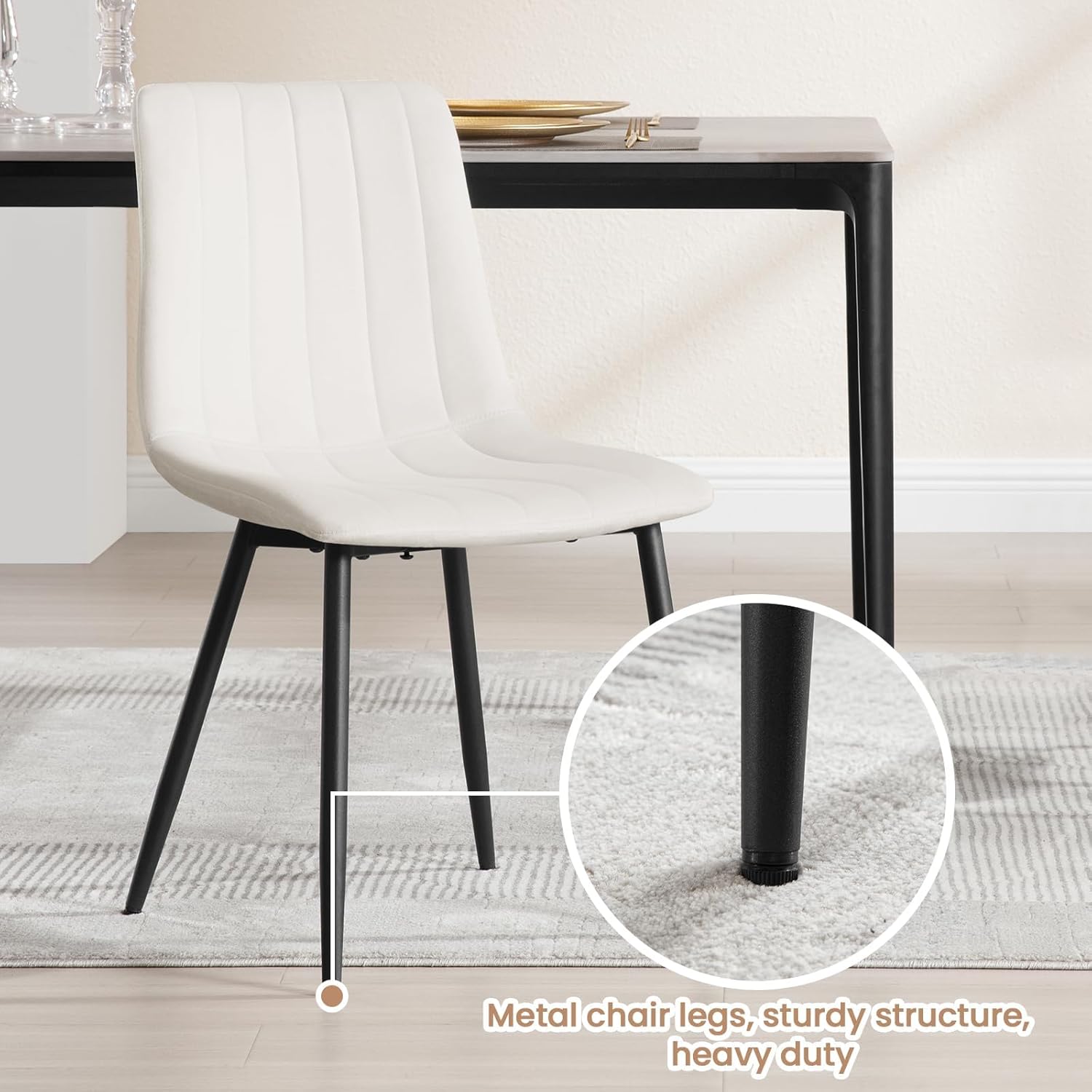 Stabilan i jednostavan za održavanje: robustan metalni okvir s ukrštenim nogama stolica za blagovanje osigurava stabilnost i izdržljivost, maksimalnu nosivost do 150 kg. Površina s praškastim premazom otporna je na hrđu i lako se čisti vlažnom krpom – idealno za svakodnevnu upotrebu u svakom domu.