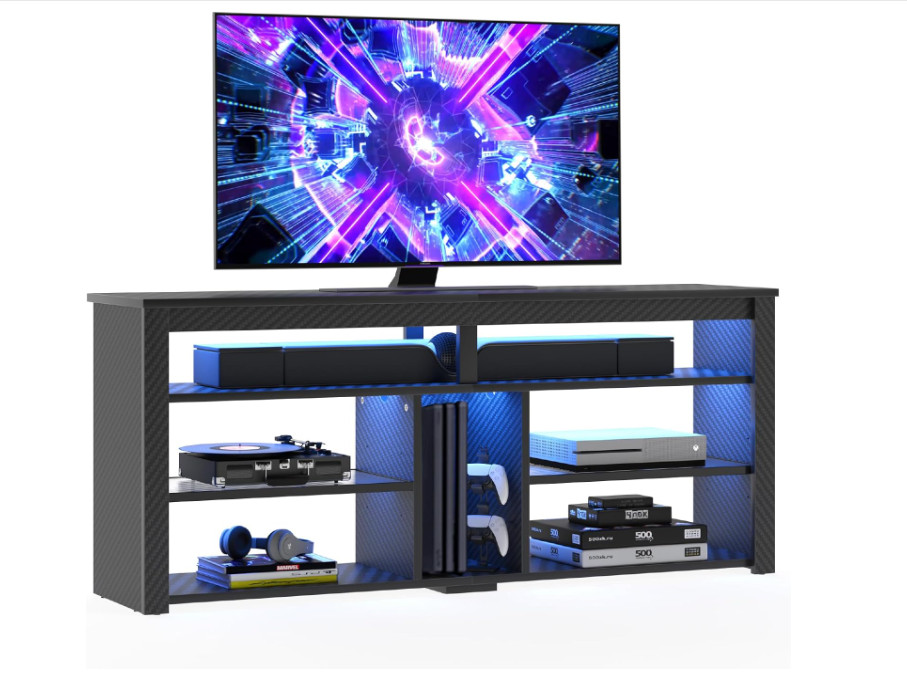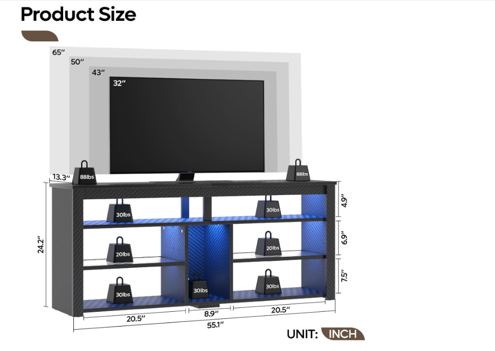 【Svestrana kompatibilnost】Poboljšajte svoj prostor ovim višenamjenskim TV stalkom od 55” koji se besprijekorno prilagođava različitim veličinama televizora. Otvoreni prostor za pohranu s 4 razine osigurava uredan i organiziran raspored, a gornji dizajn viši za jedan kat pruža dodatni prostor za pohranu ekstra dugih predmeta poput dugih zvučnih ploča, s posebno dizajniranim srednjim odjeljkom za praktično spremanje PS igraćih konzola. Savršen za raznolika okruženja poput dnevnih soba, spavaćih soba, ureda i igraonica, ovaj TV stolić pruža svestranu funkcionalnost.