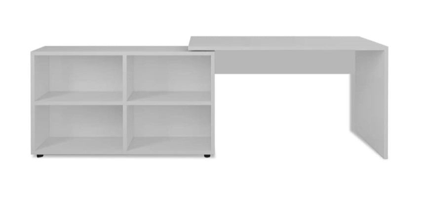 Ovaj moderni računalni stol sastoji se od stola i police za knjige s 4 police. Može se sastaviti kao ravna polica za knjige ili kao kutni stol u obliku slova L. Montaža je jednostavna. Ovaj kutni stol izrađen je od visokokvalitetnog materijala, što ga čini čvrstim i izdržljivim. Ormar za odlaganje ima 4 police s puno prostora za odlaganje.
