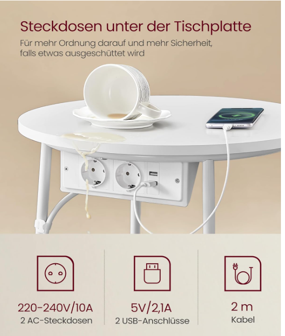 VASAGLE Klub stolić s utičnicom