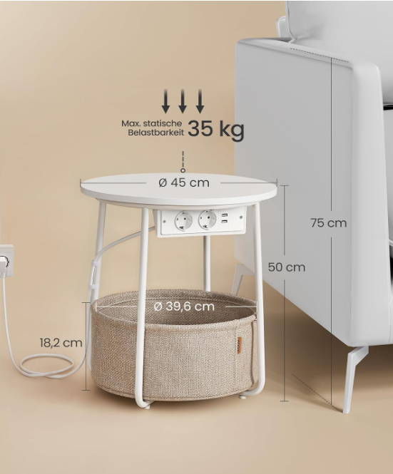 Prikladno za male prostore: stolić za kauč dimenzija 45 x 50 cm (promjer x visina) ima košaru dimenzija 39,6 x 18,2 cm (promjer x visina) i prikladan je za male prostorije. Kao pomoćni stolić u dnevnoj sobi ili noćni ormarić u spavaćoj sobi, zauzima malo prostora, a ipak nudi puno prostora za pohranu.